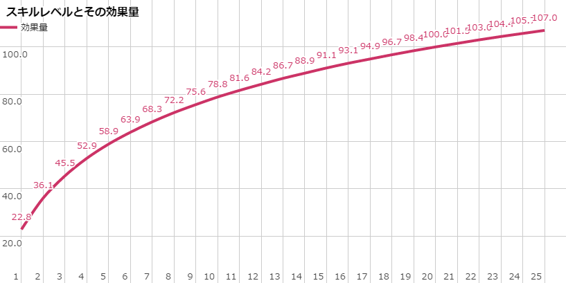 Lv20時の効果を1としたときの比。補正値ともいえる。